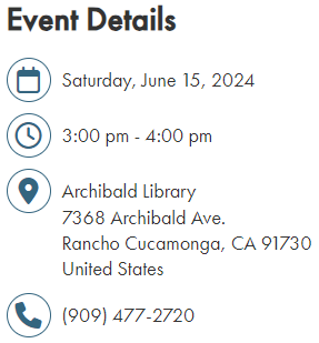This event is open to Rancho Cucamonga residents only. Proof of residency is required to participate.